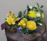 Great to see you again. I added more foliage at home to my 'horn of plenty' and also made the chrysanths shorter as you suggested - all looks good now! Cu soon, Yvonne.